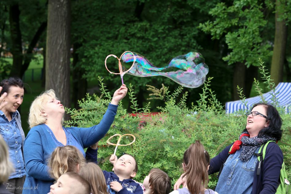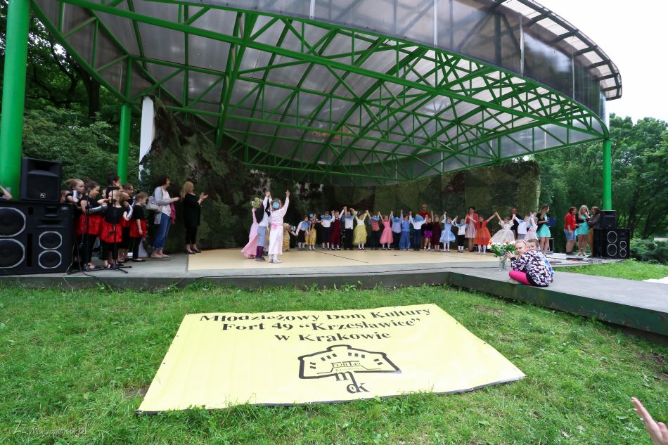 Jak co roku MDK Fort 49 „Krzesławice” w Krakowie przygotował dla dzieci z XVII Dzielnicy Miasta Krakowa – Wzgórza Krzesławickie wiele atrakcji z okazji ich święta. Podczas Radosnego Dnia Dziecka na scenie wystąpiły: zespół wokalny „Canto”, zespoły tańca współczesnego Dance Effort, Dance Effort I, Dance Effort II, Sekcja Tańca Dawnego, Teatr „Nikoli” oraz Teatr Iluzji „Mefisto”. Najbardziej niezwykłą i nietypową atrakcją był pokaz ziania ogniem. Dzięki iluzjoniście z Teatru „Mefisto” widzowie zobaczyli program o lekkiej, kabaretowo – zabawowej formule. Podczas przedstawienia publiczność miała okazję poznać mechanizm działania magii oraz starą i piękną sztukę iluzji scenicznej. Nie lada gratką był występ Teatru „Nikoli”, który łączy pantomimę oraz komiczno – taneczne scenki z udziałem dzieci i dorosłych. Widzowie mieli także okazję obejrzeć grupowe układy tańca tworzone przez instruktora tańca współczesnego p. Paulinę Wysocką, a także przez samą młodzież. Pod kierunkiem p. Anny Petrus młodzi, początkujący adepci sztuki tańca dworskiego zaprezentowali przedstawienie pt. „Jak tańczono przed wiekami, czyli taniec z figurami”. W repertuarze rozrywkowym zaprezentowała się grupa wokalna „Canto” pod kierunkiem p. Małgorzaty Ruckiej. Na zakończenie wystąpił zespół wokalno – instrumentalny prowadzony przez p. Jacka Niebudka.