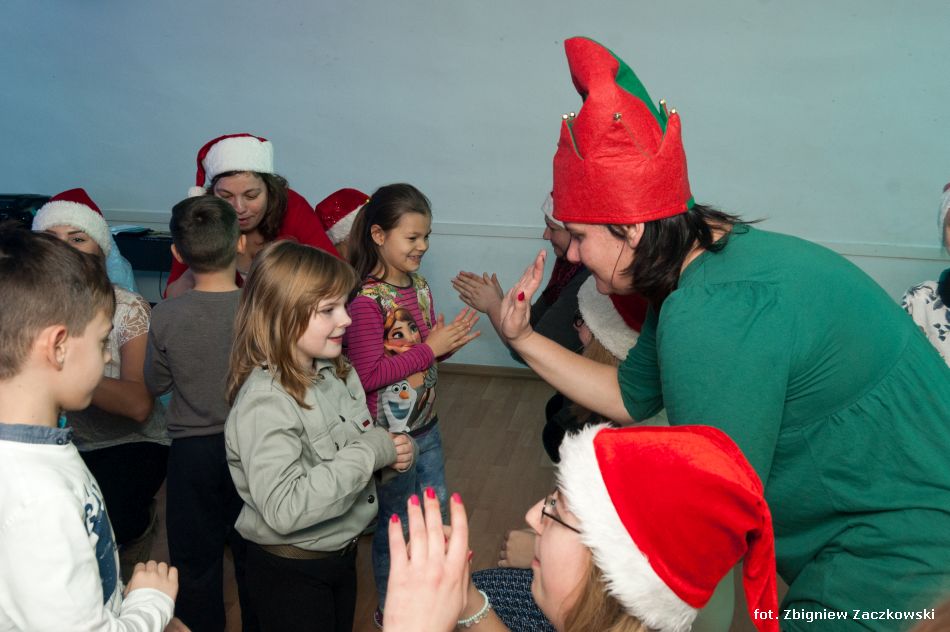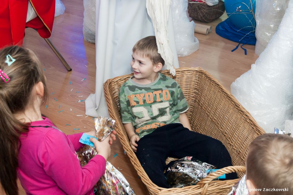 Nasi pomocnicy, okazali się niezastąpieni, żywiołowo poprowadzili przygotowane zabawy, wywołując  uśmiech na twarzach wszystkich dzieci. Po programie artystyczno-edukacyjnym, Święty Mikołaj obdarował wszystkie dzieci prezentami, po czym obiecał, że odwiedzi MDK Fort 49 w przyszłym roku.